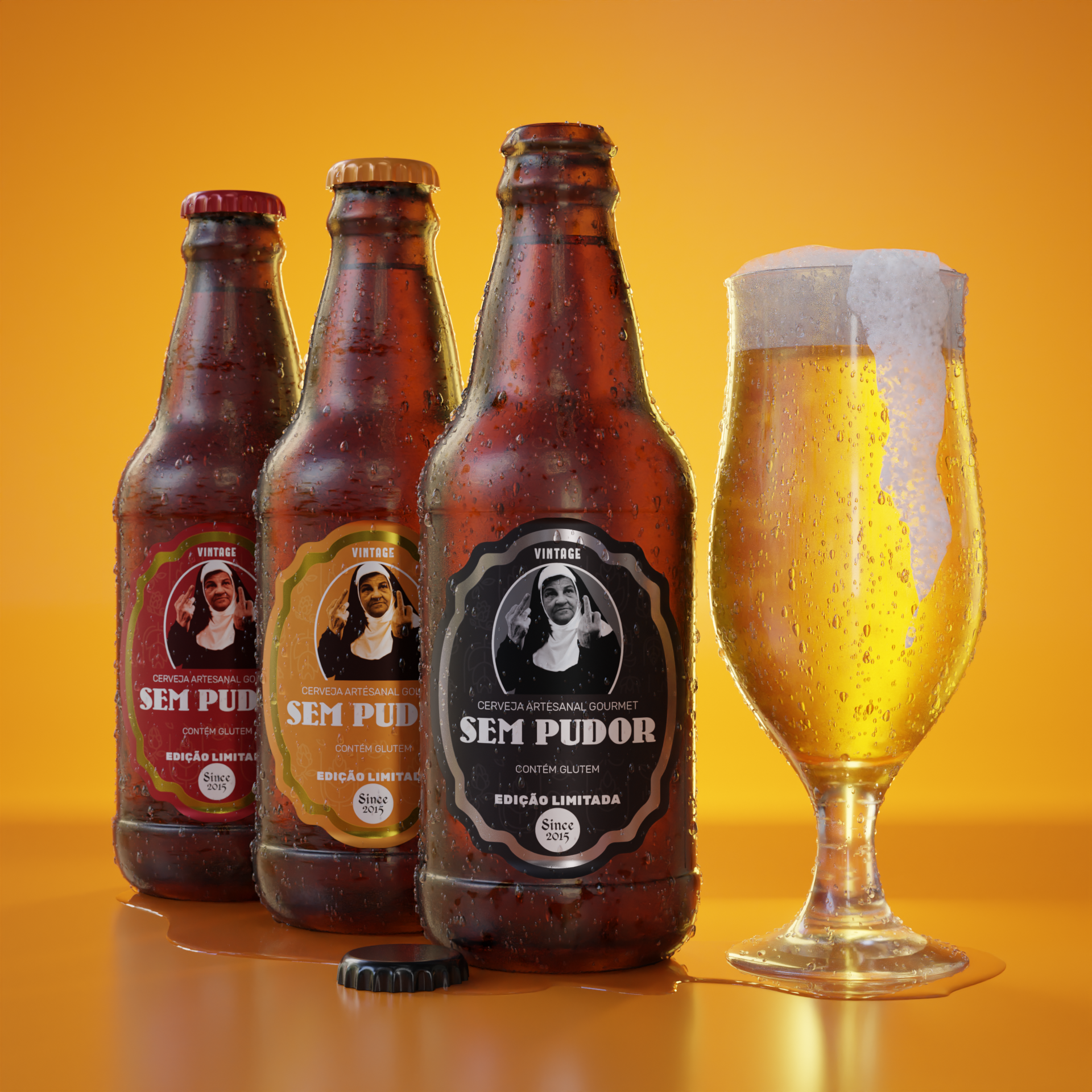 Proposta de redesign do rótulo da cerveja artesanal Sem Pudor. A ideia foi modernizar o produto sem perder a irreverência característica da cerveja. Foi utilizado o Blender para a ilustração 3d.